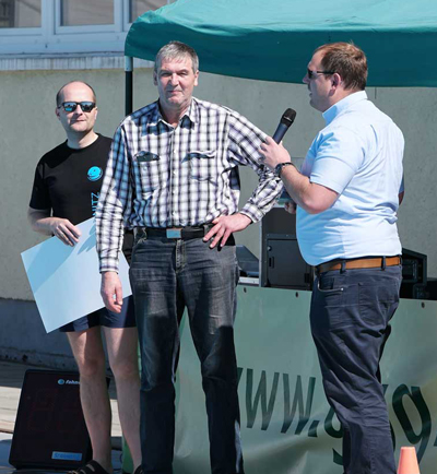 Im Bild: Rainer Beierlein (mitte) bekommt den Walther-Theumer-Ehrenpreis von Gerrit Fester (rechts) überreicht.
