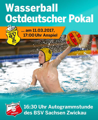 Nach einer 5-wöchigen Spielpause sind die Zweitliga-Wasserballer des SV Zwickau 04 wieder heiß auf den Spielbetrieb! In der ersten Runde des ostdeutschen Pokals 2017 treffen die 04er auf das Team des SC Chemnitz, welches momentan auf dem letzten Tabellenplatz der 2. Wasserballliga Ost rangiert. Obwohl die Zwickauer auf Grund ihrer jüngsten Erfolge (aktuell Tabellenzweiter der 2. Liga) als klarer Favorit gelten, gilt auch im Wasserball, dass der Pokal seine eigenen Gesetze hat. Zusätzlich gilt es noch, die Ausfälle von Milojkovic und Vukicevic zu kompensieren. Dennoch geht das Team um Kapitän Martin Firmbach ganz klar davon aus, dass vor den eigenen Fans die zweite Pokalrunde durch einen Sieg erreicht wird. Anspiel wird am Samstag wie gewohnt um 17 Uhr sein. Ab 16:30 Uhr sind bereits die Handballerinnen des BSV Sachsen Zwickau für eine Autogrammstunde in der Glück Auf Schwimmhalle. Wir freuen uns auf eine hoffentlich volle Halle!