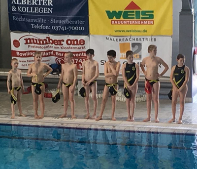 Für den SV Zwickau 04 stiegen ins Wasser: Max Spranger, Laureen Brückner, Runa Zschirpe, Luis Kalbus, Till Giebner, Logan Kreß, Leonard Mann und Nick Perfölz