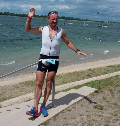 Regelrecht vom Winde verweht wurde die Premiere des NeuseenMan an der Schladitzer Bucht bei Leipzig. Eröffnet wurde der Wettkampftag mit dem Triathlon über die Sprint-Distanz (0,75 km Schwimmen - 20 km Rad - 5 km Lauf). Starker Wellengang, der eher ans offene Meer erinnerte, sorgte für schwierige Schwimmbedingungen. Vor allem die Orientierung an den Streckenbojen war für die Starter fast unmöglich, so dass die meisten Athleten etliche Meter mehr schwammen, weil sie die Bojen übersahen oder schlicht abgetrieben wurden. Einen schwarzen Renntag erwischte Martin Ganzon, der neben den Schwierigkeiten beim Schwimmen auch noch vom Pech verfolgt war. Sowohl auf der Rad- als auch auf der Laufstrecke wurde er nicht richtig eingewiesen. Dann löste sich auch noch ein Schnürsenkel, was weitere wertvolle Zeit kostete. Am Ende blieben die Uhren für ihn bei 1:11:58h stehen, was dennoch einen guten 6. Rang in der AK 35 bedeutete. Viel besser lief es bei Lothar Lanius, der vor allem das Schwimmen besser als die Konkurrenz bewältigte. Mit einer Gesamtzeit von 1:39:42 h wurde er 2. der AK 70.