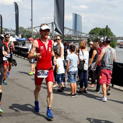 Nach monatelanger intensiver Vorbereitung startete Steffen Seifert über die klassische Ironmandistanz in Frankfurt. Insgesamt 3.000 Athleten aus aller Welt kämpften um die Europameistertitel, um persönliche Bestzeiten und um die begehrte Hawaii-Qualifikation. Die 3,8 km Schwimmen absolvierte Steffen in soliden 1:13:10 h, die anschließende 177 km Radstrecke in 5:06:16 h. Leider nahm dann auf der abschließenden Marathonstrecke die Hitze drastisch zu und machte allen Teilnehmern stark zu schaffen. Viele mussten aufgeben. Steffen erwischte es ab Kilometer 25, wo er sein avisiertes Tempo einfach nicht mehr halten konnte und lief den Marathon schließlich in 3:43:45 h. Seine Gesamtzeit von 10:12:55 h bedeutete dennoch eine neue persönliche Bestzeit und Platz 38 in der AK 50. Für die Hawaii-Qualifikation reichte das nicht, aber allein die Teilnahme an den Europameisterschaften, das hautnahe Erleben der Stars der Szene, tausende Zuschauer entlang der Strecke und Freunde und Familie beim Zieleinlauf sorgten für Gänsehaut-Stimmung und waren Lohn der Mühen.