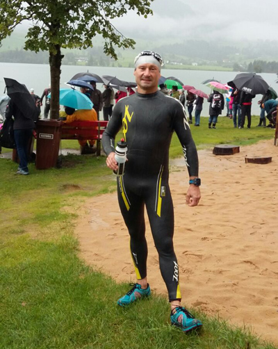 Ein echter Triathlon-Härtetest war in diesem Jahr der Challenge Walchsee-Kaiserwinkel in Österreich. Stefan Bauer und alle anderen Starter sahen sich Dauerregen und Temperaturen von nur 9 Grad ausgesetzt. Aus Sicherheitsgründen verkürzten die Veranstalter schließlich sowohl die Schwimm- als auch die Radstrecke. Insbesondere die steilen, engen Abfahrten waren wegen des Aquaplaning einfach nicht mit den Rennrädern befahrbar. So war am Ende eine Distanz von 1,6 km Schwimmen - 70 km Rad - 21,1 km Lauf zu bewältigen. Aber auch die verkürzte Version hatte es in sich und von 800 gemeldeten Athleten kamen nur 390 ins Ziel. Hauptproblem für die meisten Starter war die Kälte. Stefan beispielsweise war nach dem Radfahren so durchgefroren, dass er nicht ohne Hilfe die Radschuhe wechseln konnte und erst nach einigen Laufkilometern seine Füße wieder spürte. Trotz aller äußeren Widrigkeiten kämpfte er sich durch. Mit einer Gesamtzeit von 4:21:17 h gehörte der 04er zu den stolzen Finishern des Tages.