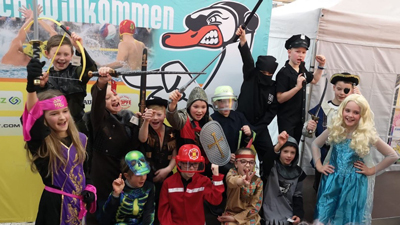 Gleich am Samstag trafen sich die Jungs der U10 und U12 Mannschaften wieder, um im Globus-Einkaufszentrum bei einer Faschingsmodenschau verschiedene Kostüme vorzuführen. Unterstützt wurden sie dabei von ihren Schwestern, Trainern und Spielern der 1. Männermannschaft. Unter toller Moderation von Sven Schneider, dem 1. Vorsitzenden des Förderverein Zwickauer Wasserball e. V., wurden die Outfits präsentiert und der Wasserballsport dem begeisterten Publikum nähergebracht. Auch hier hatten die Jungs jede Menge Spaß.
