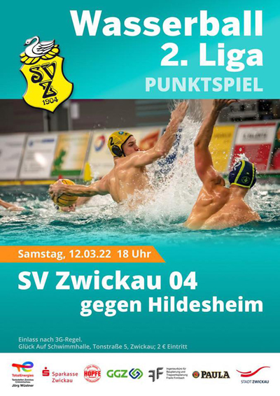 Am Samstag empfangen unsere Zwickauer Wasserballer das Team des Hellas 1899 Hildesheim in der Glück Auf Schwimmhalle. Die Niedersachsen nehmen in diesem Jahr erstmalig als Gaststarter an der 2. Liga Ost teil. Nach den bisherigen Ergebnissen sind die Gäste eine Bereicherung für unsere Liga. Sollte sich der Coronabedingte Spielbetrieb im Norden nicht normalisieren, so werden sie sicher auch im nächsten Jahr in unserer Gruppe verbleiben. Zum Spiel selbst ist zu sagen, dass die 04er erneut sichtlich geschwächt in die Partie gehen. Somit wird es alles andere als leicht die Punkte in Zwickau zu behalten. Anspiel in der Glück Auf Schwimmhalle ist um 18:00 Uhr. Zuschauer können gegen Vorlage eines 3G-Nachweis die 04er Wasserballer unterstützen!
