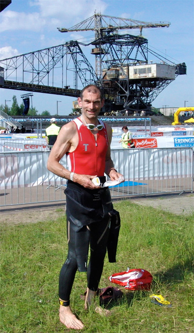 Jörg Unger (SV 04) nutzte die einmalige Kulisse der “Stadt aus Eisen” für den Saisonstart 2010. Auf drei verschiedenen Distanzen gingen insgesamt 620 Athleten und 41 Staffeln im ehemaligen Tagebaugelände an den Start, Jörg über die Olympische Distanz (1,5km Schwimmen – 40 km Rad – 10 km Lauf).
