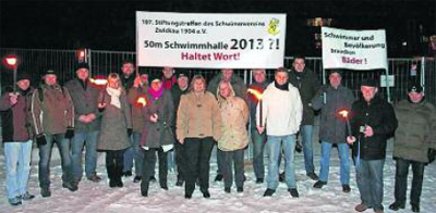 Zum diesjährigen Stiftungstreffen des Schwimmverein Zwickau 04 trafen sich am Mittwoch ehemalige und aktuelle Vorstandsmitglieder an einem ungewöhnlichen Ort. Sie standen vor dem Brachland, wo bis zum Sommer vergangenen Jahres noch die Diesterwegschule stand. Noch in diesem Jahr soll an gleicher Stelle mit dem Bau der neuen städtischen Schwimmhalle begonnen werden. Die Schwimmsportler mahnen die Verantwortlichen, ihr lang gegebenes Wort zu halten und hoffen, den ersten Spatenstich für die Sportstätte bald erleben zu dürfen. Schwimmen ist ohne Bäder nicht möglich. Die Schließung der Schwimmhalle am Erlenbad 2005 war für das Schwimmen in Zwickau ein herber Schlag. Das neue Bad soll für die Bevölkerung, den Schulsport und auch für die Schwimmsportvereine eine deutliche Verbesserung der aktuell unbefriedigenden Situation bringen.