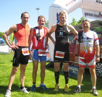 Im Rahmen des Powerman gab es auch eine verkürzte Variante von 5-20-2,5 km für Jedermann. Hier gingen Lutz Reinhold, Ingo Riemer, Martin Ganzon und Markus Pilz vom SV Zwickau 04 an den Start. Die Streckenführung war als mehrfach zu absolvierender Rundkurs angelegt, d.h. auch die Amateure mussten das anspruchsvolle Profil hin zur Vogtlandarena bewältigen, allerdings nur einmal und nicht mehrfach wie die Profis. Schnellster des Zwickauer Quartetts war an diesem Tag Markus Pilz. Mit seiner Zeit von 1:12 h belegte er Platz 4 in einer stark besetzten AK 25. Es folgten Martin Ganzon nach 1:15 h (2. AK 30), Ingo Riemer nach 1:20 h (3. AK 45) und Lutz Reinhold nach 1:43 (3. AK 50)