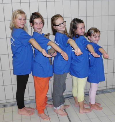 Nachdem am Samstag vor zwei Wochen die „großen“ Synchronschwimmerinnen des SV Zwickau 04 die D-Kadersichtung in Dresden zu absolvieren hatten, waren diesen Sonntag die jüngsten Synchron-Mädels an der Reihe, um ihr Können bei der E-Kadersichtung unter Beweis zu stellen. 28 Minis aus ganz Sachsen waren voller Erwartungen nach Dresden gereist. Unter ihnen waren auch 5 Schwimmerinnen des SV Zwickau 04. Die 04er, die sich wacker schlugen, mussten, ähnlich wie die älteren Mädels, Prüfungen sowohl an Land als auch im Wasser absolvieren. Dabei galt es unter anderem in den Disziplinen Liegestütz, Spagat, Lauf, Tauchen oder Kopfsprung gegeneinander anzutreten.