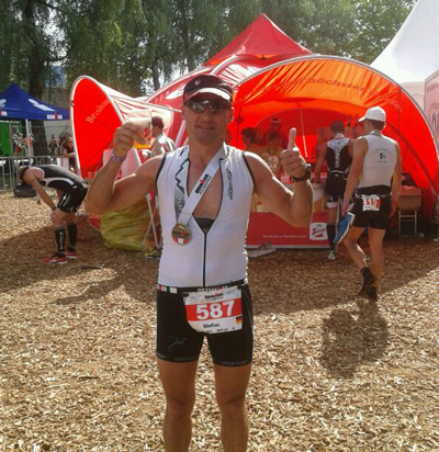 Eine sensationelle Zeit von 9:55 h gelang Stefan Bauer beim Ironman im österreichischen Klagenfurt. Insgesamt gingen 3.000 Athleten aus 60 Nationen an den Start der klassischen Distanz von 3,8 km Schwimmen – 180 km Rad – 42 km Lauf. Stefan erwischte einen perfekten Wettkampftag. Schon bei der Auftaktdisziplin im glasklaren Wörthersee blieben die Uhren bei 1:10 h und damit bei einer neuen persönlichen Bestzeit stehen. Auf der Radstrecke, die teilweise Tour de France Niveau aufwies, legte er mit 5:05 h gleich noch eine Bestzeit nach und auch beim abschließenden Marathonlauf zeigte er keine Schwäche. Die 42 km absolvierte er in starken 3:28 h. Inklusive Wechselzeiten hieß das nach insgesamt 226 Wettkampfkilometern 9:55 h und Gesamtplatz 288. Herzlichen Glückwunsch