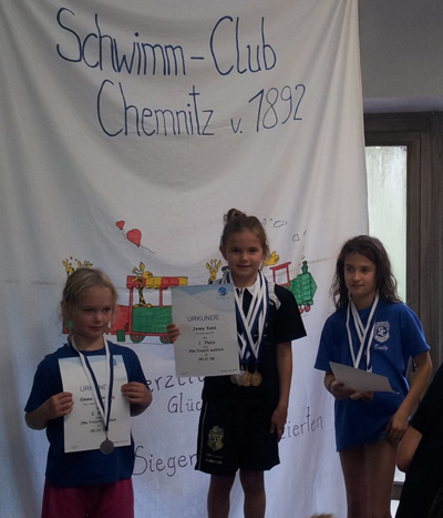 Vor den Augen der Eltern, Großeltern und Trainern wollten unsere 14 Sportler zeigen, was sie alles gelernt haben. Es waren bei allen schon große Fortschritte zu sehen, allerdings gibt es auch noch einige „Baustellen“. Dies braucht noch viel Zeit, Geduld und viel Training. Besonders hervorzuheben ist unsere kleinste Schwimmerin Jenny Kunz, die nach anfänglicher großer Aufregung richtig gut in den Wettkampf fand und ihren Konkurrentinnen keine Chance lies. Sehr gute Leistungen erzielten auch Elsa Pöhler, Luis Kalbus, Jonas Neumärker und Denis Filiz. Sie erreichten alle einen Platz auf dem Siegerpodest. Glückwunsch!!!