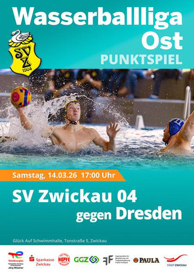 Am Wochenende empfangen die Wasserballer des SV Zwickau 04 den SWV TuR Dresden in der heimischen Glück Auf Schwimmhalle. Wenn am Samstag um 17 Uhr das erste Anschwimmen erfolgt, sind die 04er gegen den Tabellenletzten sicherlich Favorit. Dennoch mahnt Trainer Jörg Wüstner zur Vorsicht: „Die Landeshauptstädter haben vor zwei Wochen ihren ersten Sieg in der laufenden Saison der Wasserballliga Ost eingefahren. Gegen die starke Zweitligareserve aus Neukölln war das eine Überraschung, die man durchaus ernst nehmen sollte.“